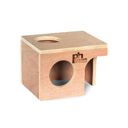Unvarnished wood hut designed for small animals to play, nest, hide, and sleep. Features two round crawl holes and a... Read more